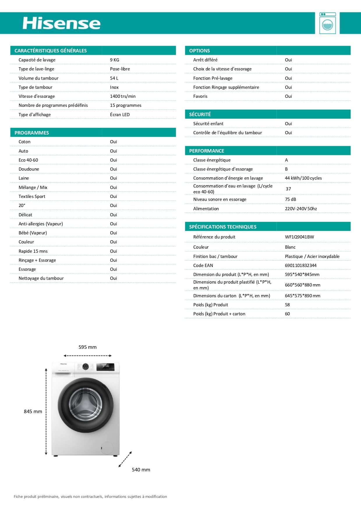 Lave linge Hisense