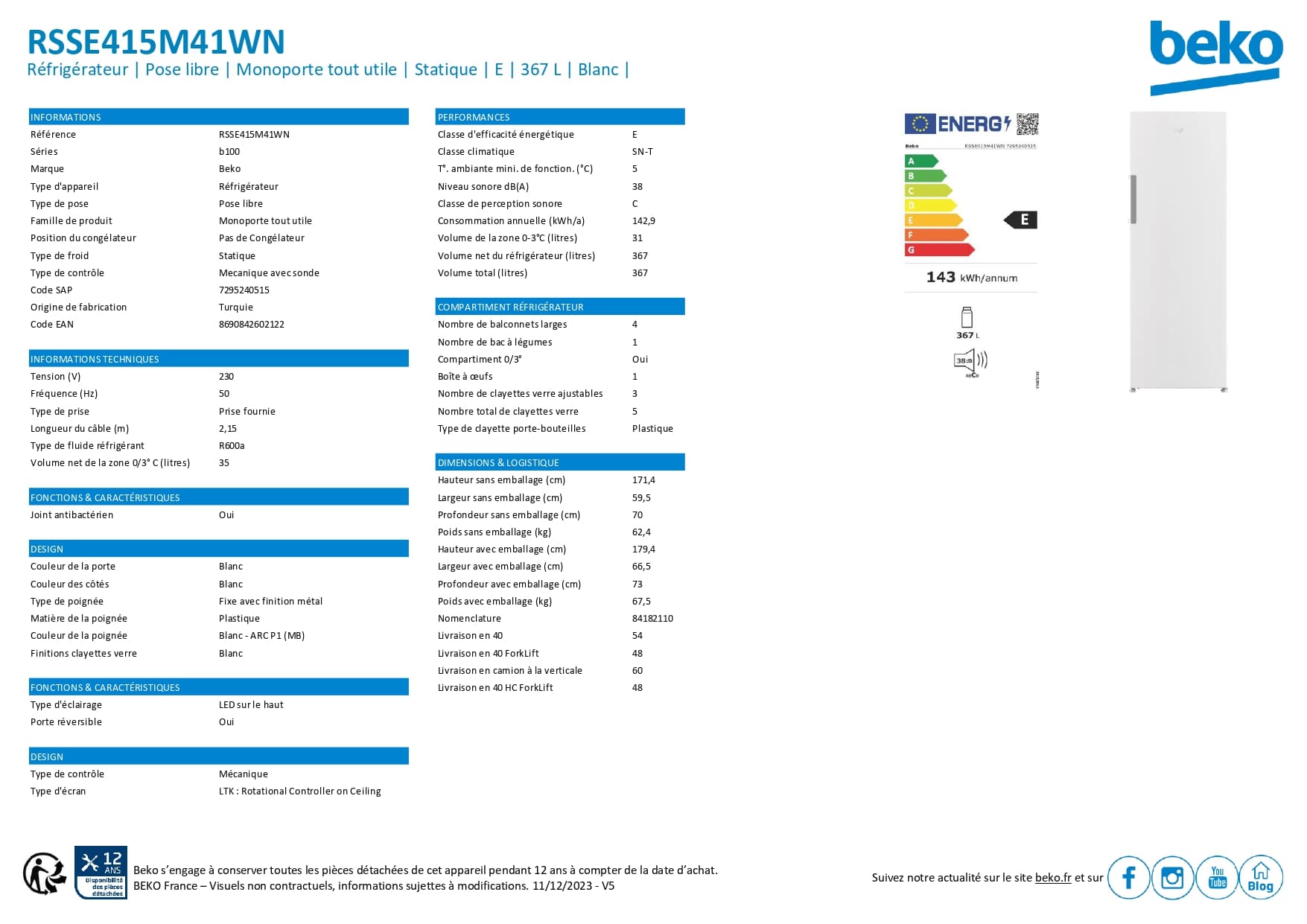 367 Litres - Énergie E