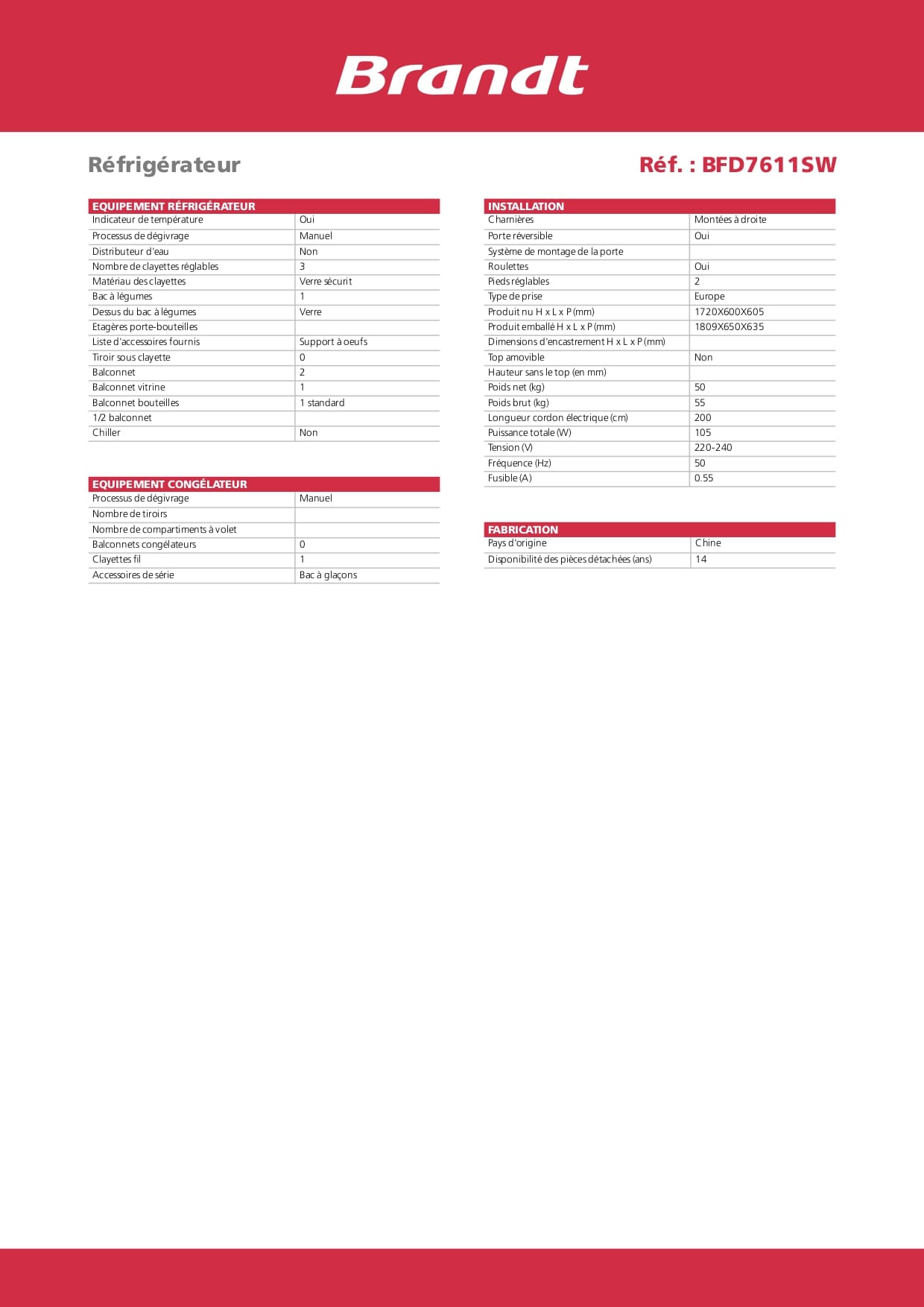 Réfrigérateur BRANDT