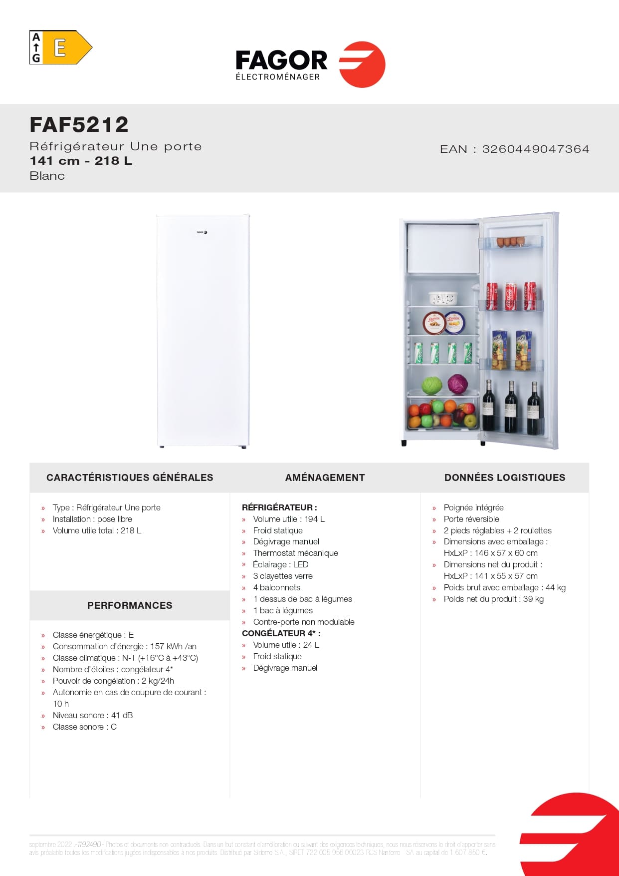 194 + 24 Litres - Énergie E