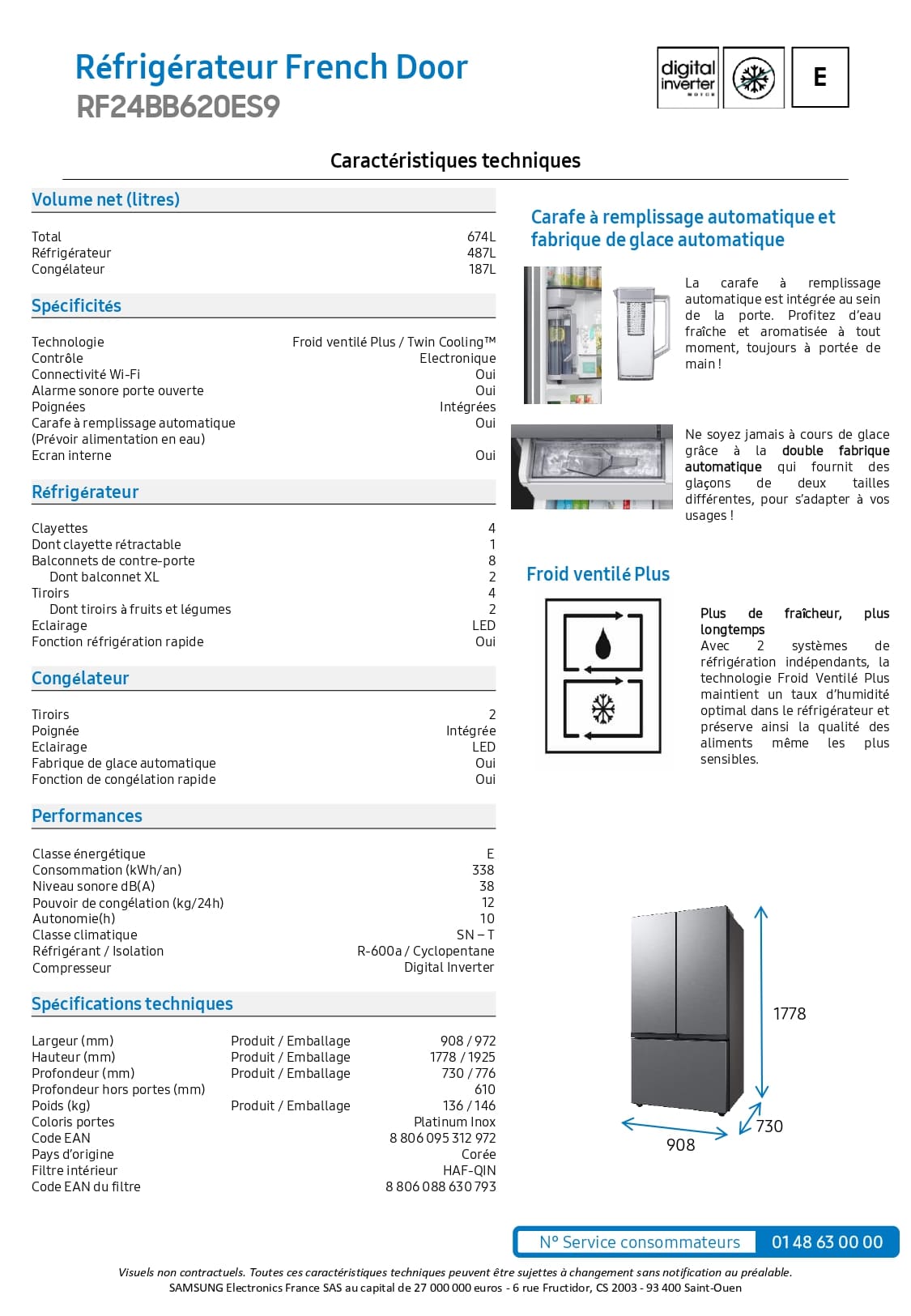 487+ 187 Litres - Froid ventilé - Énergie E