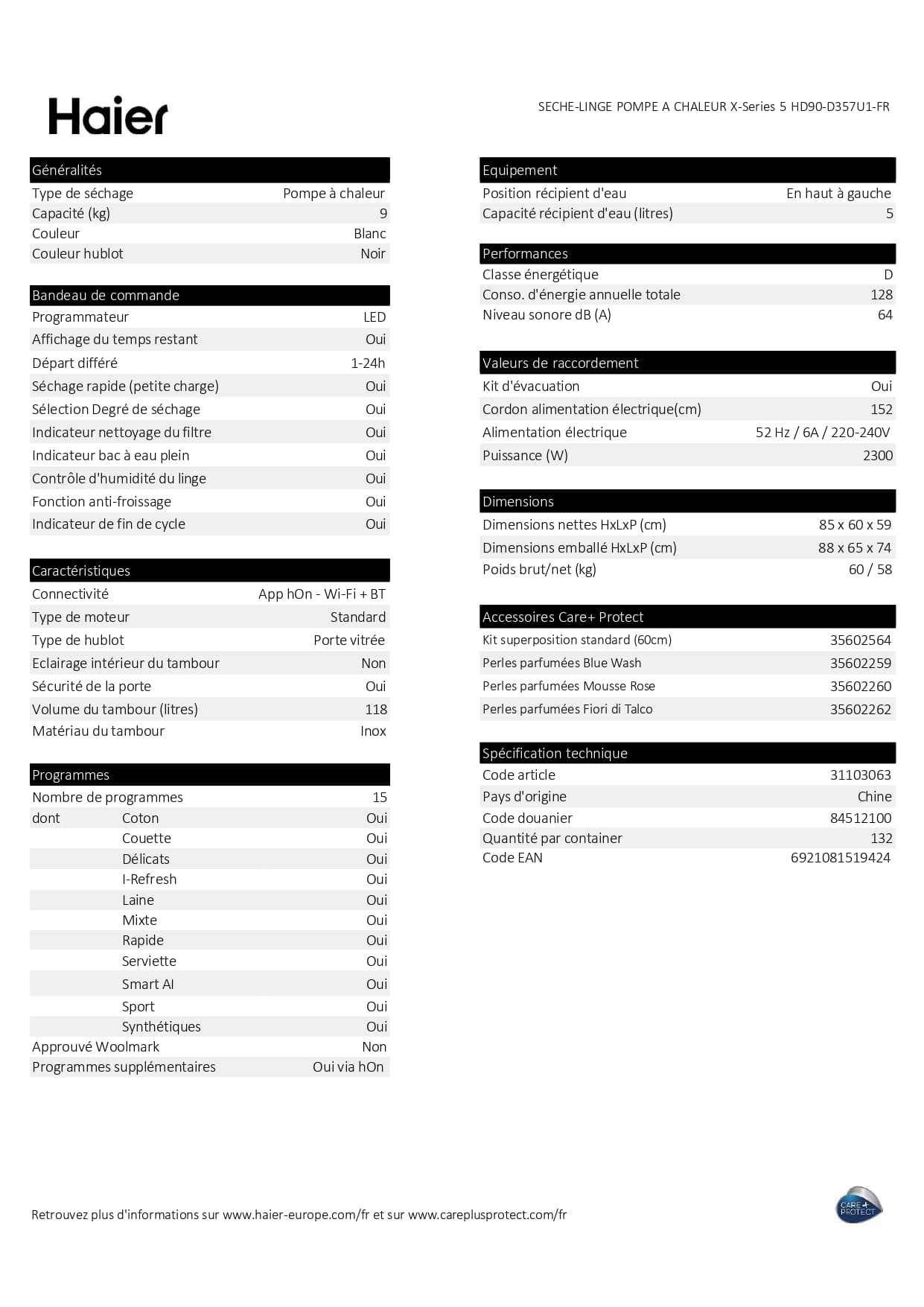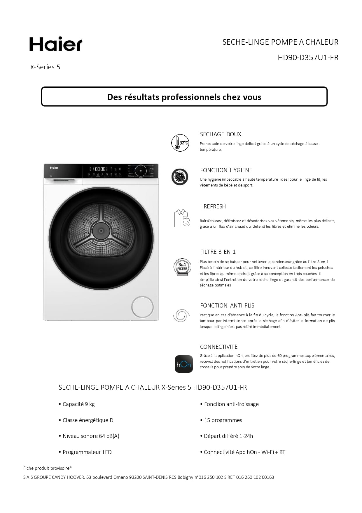 9 Kg - Pompe à chaleur - Énergie D ( norme 2025 )