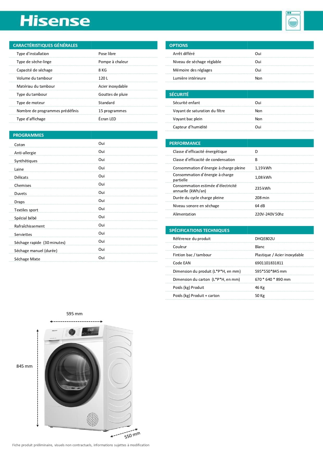 8 Kg - Pompe à chaleur - Énergie D ( norme 2025 )