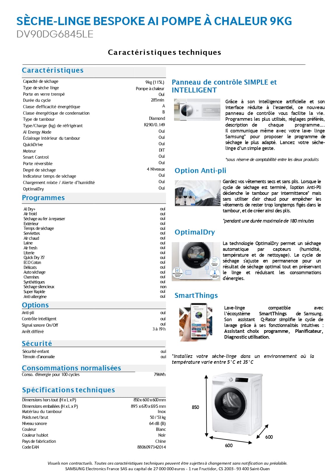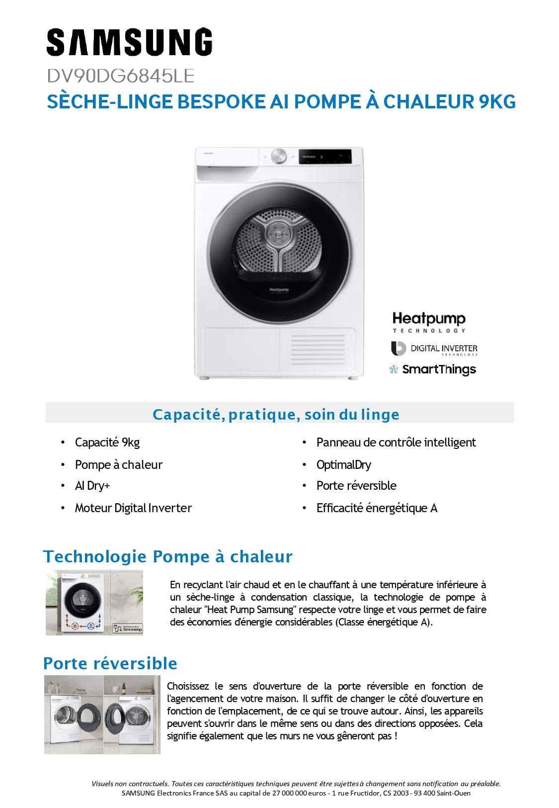 9 Kg - Pompe à chaleur - Énergie A ( norme 2025 )